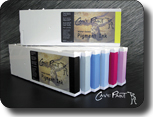 The award winning Cave Paint pigment inks are the most advanced pigment inks available on the market today. The longevity of images is assured through the use of the most light stable colorants available, and micro encapsulation pigment technology provides bright colors on both matte and gloss media. The Cave Paint range includes multiple versions (dependent on printer model) that are all color matched to the original inks, so no new color settings or profiles are normally required. Cave Paint is supplied in wide format cartridges and in bulk bottles for use with our range of bulk ink feed systems.