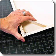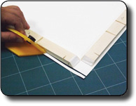 STEP 6. Using our canvas trimmer or a sharp knife, trim off the excess canvas. The Gallerie wrap bars provide a nice straight edge to trim along.