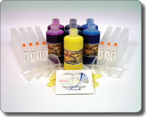 Complete Refillable Cartridge Kits for Epson wide format printers - includes a 500 ml bottle of each ink